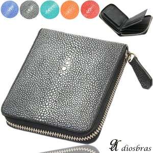 Amazon 二つ折り レザーウォレット 本革 スティングレイ スティングレー エイ革 ガルーシャ ウォレット 短財布 革財布 ショートウォレット 紳士財布 プレゼント 二つ折り財布 Diosbras ディオブラス 財布