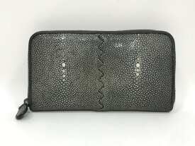 スティングレイ 黒色 長財布 ラウンドファスナー エイ革 ガルーシャ Iichi ハンドメイド クラフト作品 手仕事品の通販